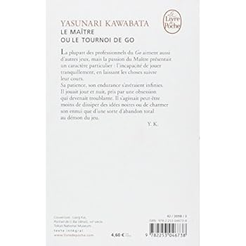 " " La plupart des professionnels du Go aiment aussi d'autres jeux, mais la passion du Maître présentait un caractère particulier : l'incapacité de jouer tranquillement, en laissant les choses suivre leur cours. Sa patience, son endurance s'avéraient infinies. Il jouait jour et nuit, pris par une obsession qui devenait troublante. Il s'agissait peut-être moins de dissiper des idées noires ou de charmer son ennui que d'une sorte d'abandon total au démon du jeu. "KawabataTexte intégral. "